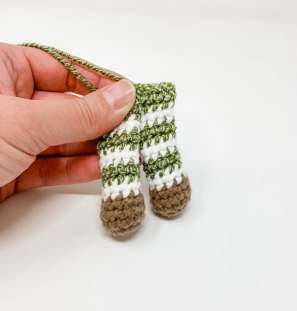Fasten off on the first leg. When you complete the 2nd leg continue to round 13 to join the legs.