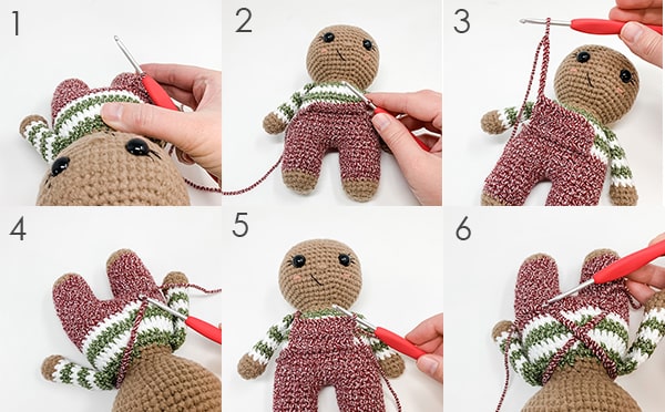 At the end of round 17 pinch the arm flat and make 5 SC across the top to close, fasten off and leave a long tail to sew onto the body.